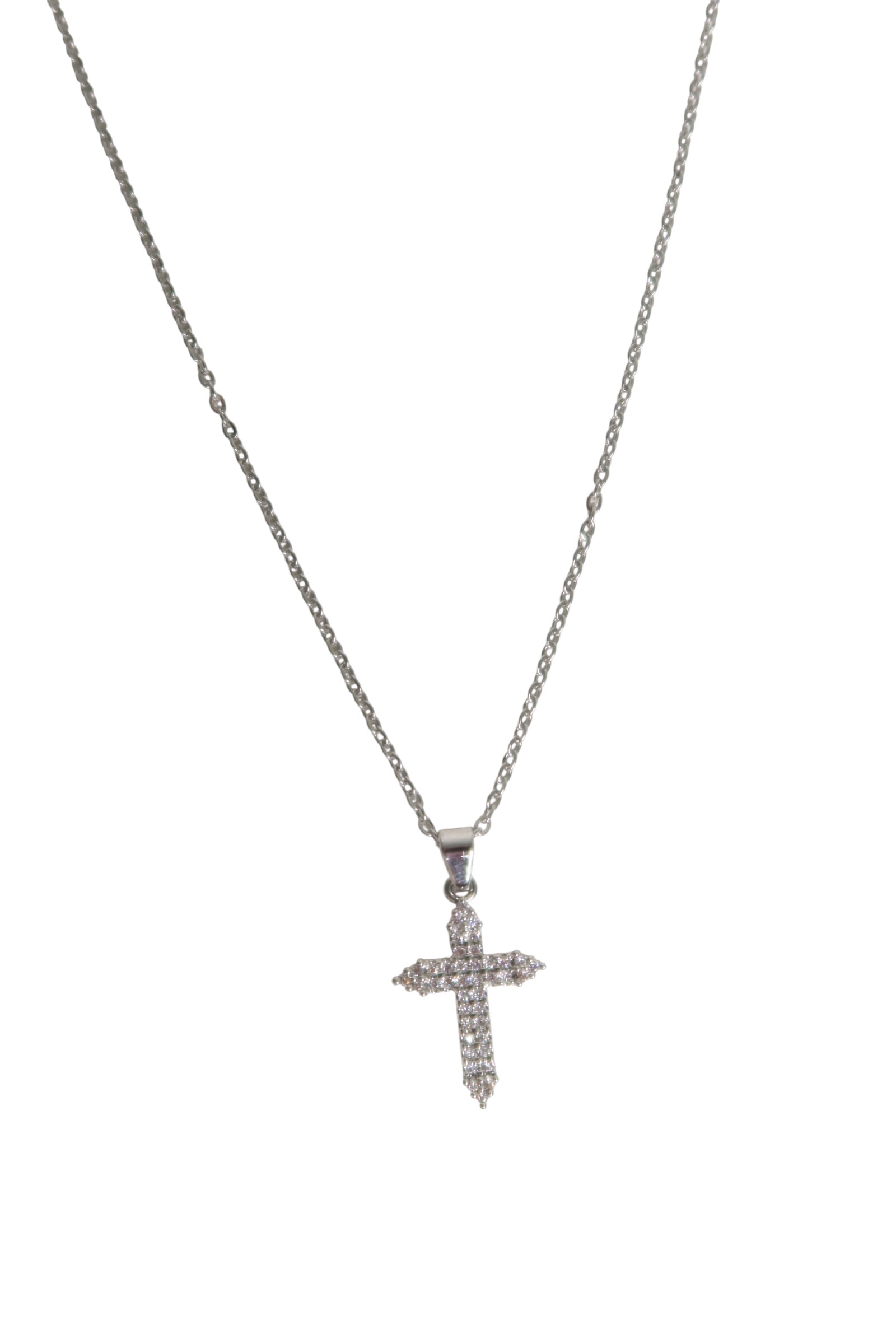 Colar Cruz Cravejada com Zircônias de Aço Inoxidável